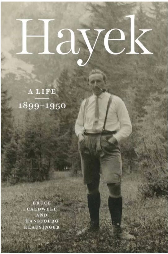 我想推薦一本新出版但還沒有中譯的書,那就是杜克大學考德威爾(Bruce Caldwell)所著《哈耶克傳》(Hayek: A Life,1899-1950)。 考德威爾是當代最著名的哈耶克研究專家,過去也已經寫過不少關於哈耶克的書,例如《哈耶克評傳》(Hayek's Challenge: An Intellectual Biography of F.A. Hayek)。 但這次不一樣。