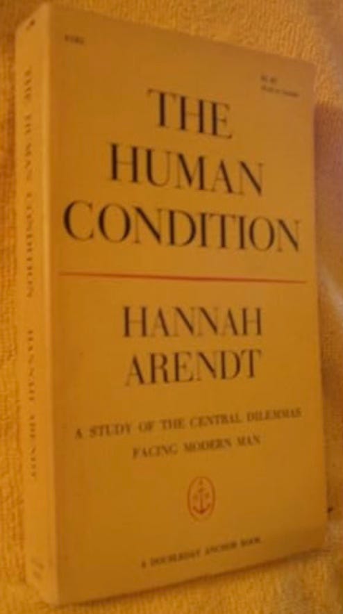推薦阿倫特(Hannah Arendt)的《人的條件》(The Human Condition)。 這本書有中譯本(上海人民出版社,1999年)。 我是在上世紀八十年代初期讀到這本書的片段譯介,很有共鳴,當時就把一些感受和思考寫進《蘇格拉底之死散論》(1985年)。