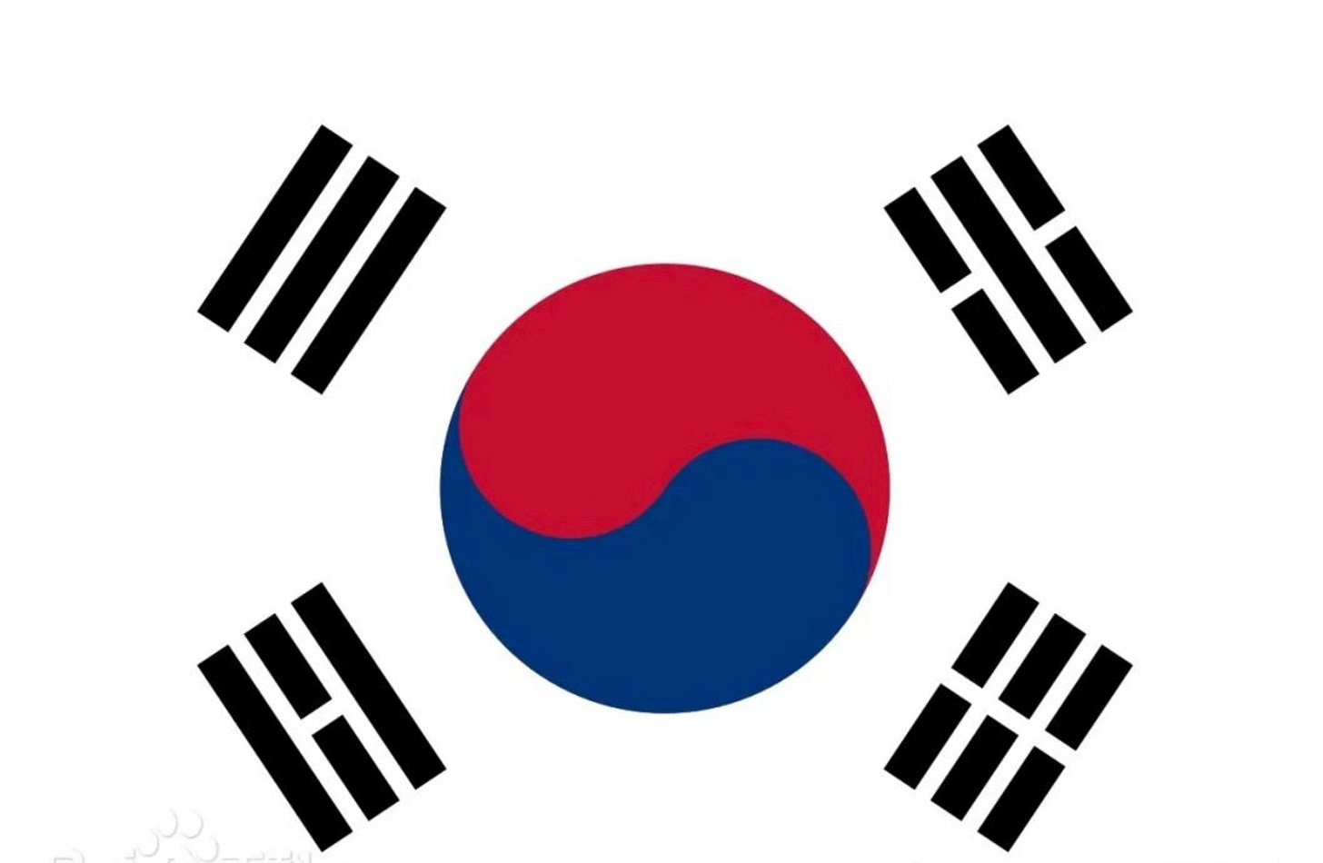 然后嘛,韩国的国旗就很形象的为我们概括了板门店签字之后的半岛状况,您要不相信,请找副韩国国旗的图片来看图说话——
