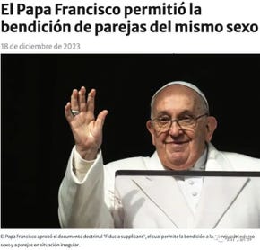 罗马教宗方济各宣布,允许神父祝福同性伴侣。新闻里写得很讲究,非异性伴侣,在LGBT的语境里,非异性伴侣包括但不仅限于同性,但在天主教里,不会有更大的想象空间了。