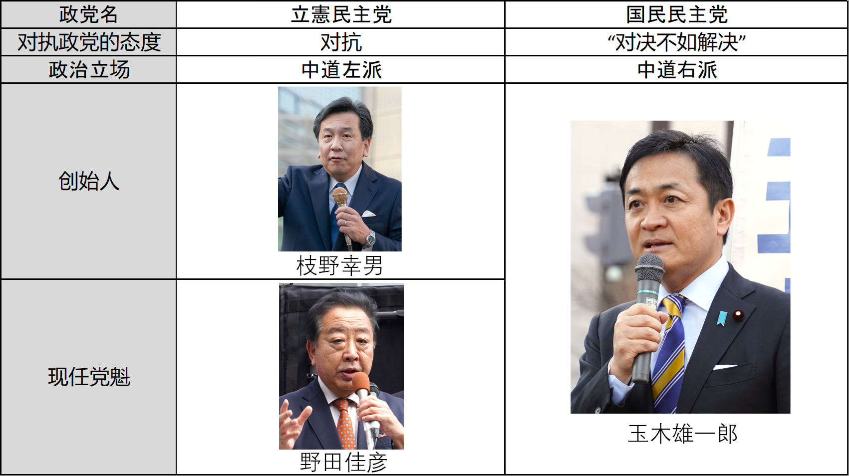 上面所说的,“传统政党”指具备历史积累与组织性支持基础的政党。例如,自民党与日本共产党都属于典型的老牌政党。立宪民主党与国民民主党虽然成立时间相对较短,但两者的政治渊源均可追溯至民主党,并且同样受到日本最大工会组织——日本工会总联合会(简称“联合”)的支持。因此,它们也可被视为具有传统政党特征的政党。基于同样的理由,中道改革联合尽管是最新成立的政党,但由于同时获得“联合”以及日本最大宗教团体创价学会的支持,也被归入传统政党之列。