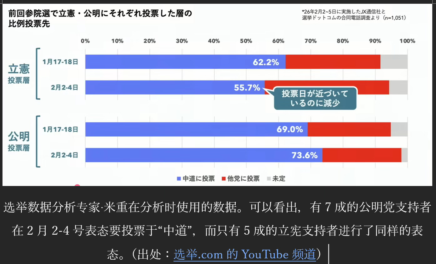 网络舆论是理解高市领导下的自民党获胜时不可或缺的因素。选举期间,网络上大量涌现的高市相关短视频,在人们心中塑造了她的正面形象。根据选举信息网站“选举.com”在竞选中期收集的数据,在 YouTube 上,与高市早苗相关的视频数量不仅单独超过了与自民党本身相关的视频数量,也远远高于参政党等擅长网络战略的政党。网络舆论对选举结果产生决定性影响,已成为近年来日本政治的重要趋势。与高市自民党不同的是,这种趋势对中道改革联合却产生了负面作用。近年来,针对以立宪民主党为代表的自由派阵营的负面网络内容大量存在,中道改革联合也不可避免地受到了波及。例如,在选举期间出现了大量的绯闻,主张“中道”为“向往中国的道路”,并声称中道改革联合的党徽相似中国外交部的标识。(这一点当然不符合事实,因为“中道”在众多问题上主张对中国强硬,并党内拥有枝野幸男等资深的“台湾派”政治家)