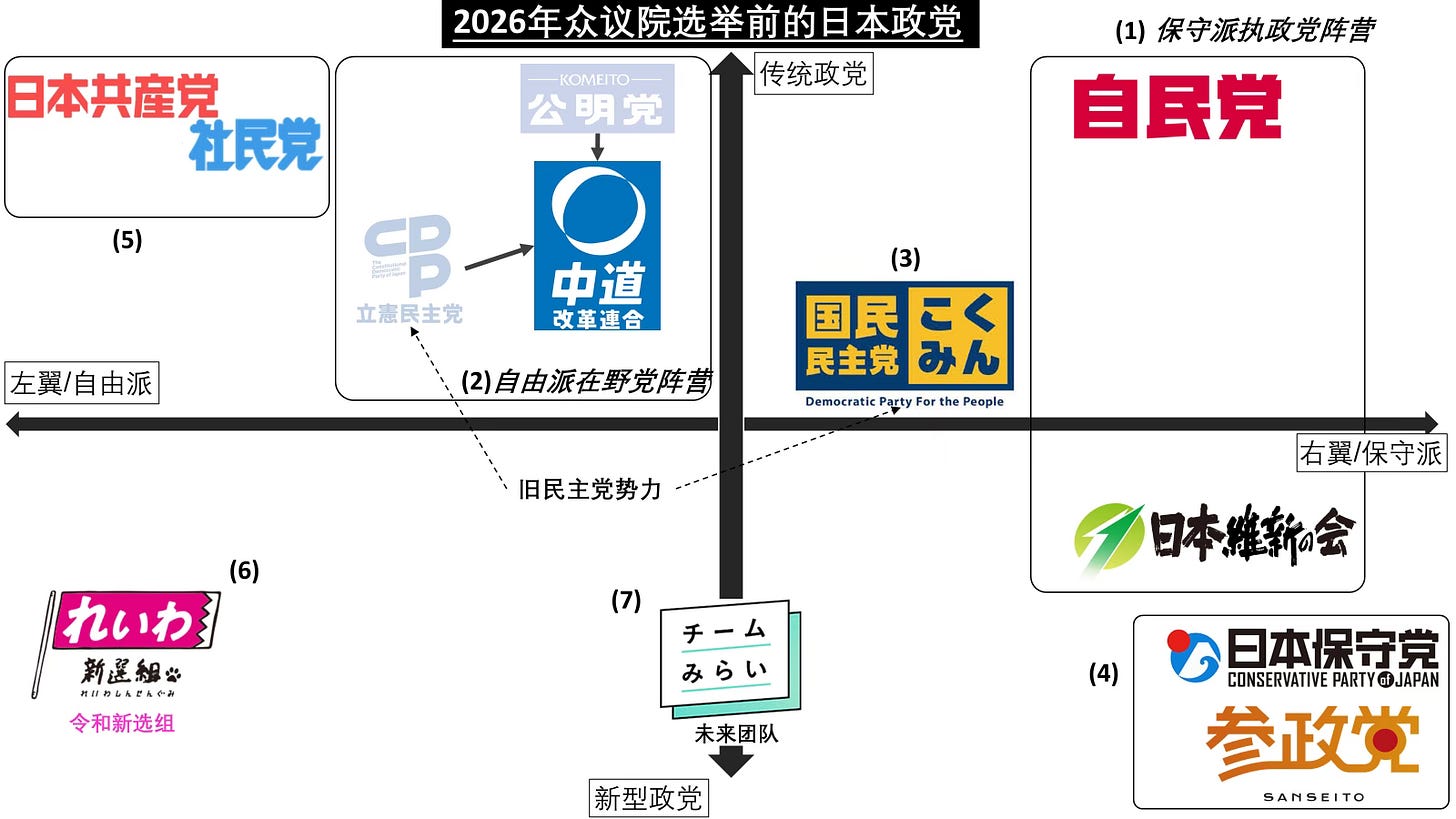 此后,受物价上涨等因素影响,民众对政治的不信任持续加深。2025年参议院选举失利后,石破茂被迫辞职。就在新任自民党总裁高市早苗即将出任首相之际,与自民党联合执政长达26年的公明党宣布退出执政联盟。这一事件可谓日本战后政治史上的重大转折。原因在于,在采用单一选区制和比例代表制的现行选举制度下,自民党长期依赖拥有创价学会的强大组织票的公明党支持,才能维持政权。(参见:Why Did Japan’s Longest-Ruling Coalition End?)