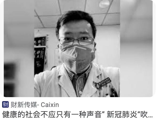 李文亮,因第一個對外說出疫情、第一個實名對媒體道出疫情隱瞞情況而被中國民眾視為“吹哨人”,但也因此,他也是第一個因武漢疫情而遭遇文字獄的人。無論是生前還是生後,自始至終都遭遇著嚴厲的新聞審查和言論審查。