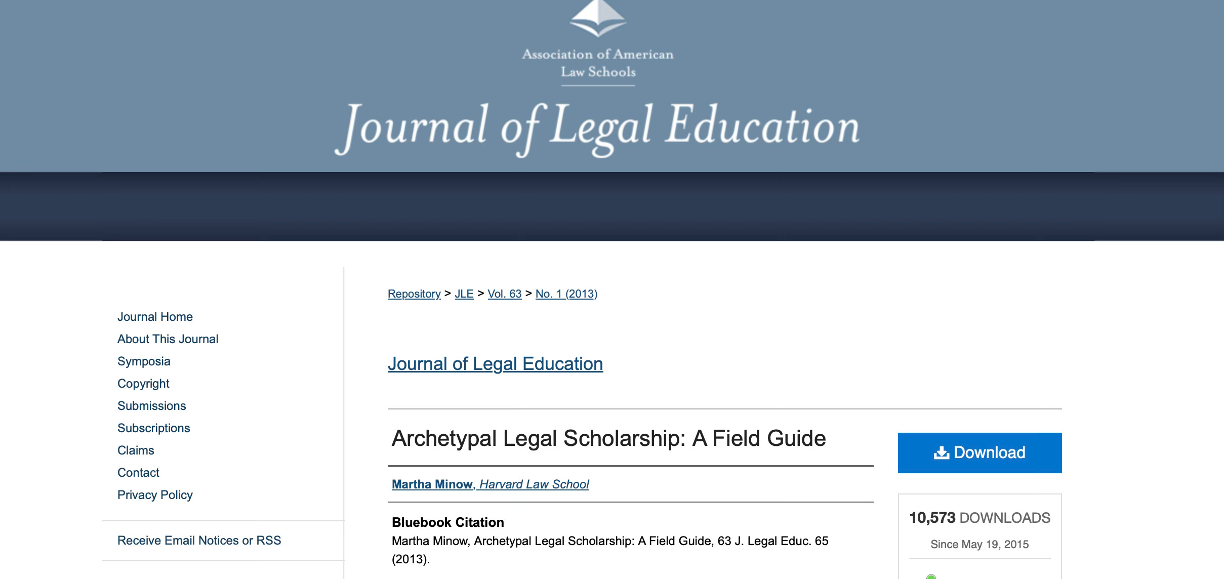 把判例与成文法编织为可理解的体系,讲的是一个从混乱走向秩序的故事(法律重述,Doctrinal Restatement);汇聚跨领域、跨时代的多条案例线索,建立新的框架或范式,使过去、现在、未来相互照亮,讲的是一个发现道德秩序的故事(重构式研究,Recasting Project);通过呈现问题、比较路径、提出评估准则与方案,并坦承目的—手段间的张力,产出可被各方使用的分析,讲的是一个““能否结束混乱并以何种代价修复秩序”的故事(政策分析,Policy Analysis);以经验研究或模型建构检视法律人常用的社会/经济命题,使法律与经验现实真正对话,讲的是一个“人性假设”的故事(命题检验,Testing a Proposition);描绘法官、律师、法院及制度运作,揭示操作复杂性与理论—实践落差,追问的是一个“苦难怎样产生”以及“社会秩序如何维持”的故事(制度研究,Study of Institutions);从各种“秩序/混乱”的叙述里暴露法律隐含的权力与意识形态,打破表象,探入更深的经济/社会/政治/伦理困境,讲的是一个“谎言是否遮蔽了真理”的故事(批判研究,Critical Projects);以他时、他地的制度选择照亮此时此地,回应秩序是否只能依赖恐惧和武力的追问,探索不同社会如何解决冲突,讲的是一个借鉴他人经验来结束我们的混乱的故事(比较与历史研究,Comparative and Historical Inquiries );直面法律本身的困境、追问:世界上是否存在一个先验的道德秩序,法律应当反映并实现这个秩序?(法理学/法哲学研究, Jurisprudence/Philosophy)以上种种,可看作八个故事体裁,来自哈佛法学院前院长玛莎·米诺(Martha Minow)概括之法律学术的八种原型(archetypes)。每一个体裁,或从特定视角呈现法律的来龙去脉,或将人的故事安放于表与里、混乱与秩序、虚无与价值等人类社会的结构主题之中。———参见:Martha Minow, Archetypal Legal Scholarship: A Field Guide, Journal of Legal Education 63:1 (2013)
