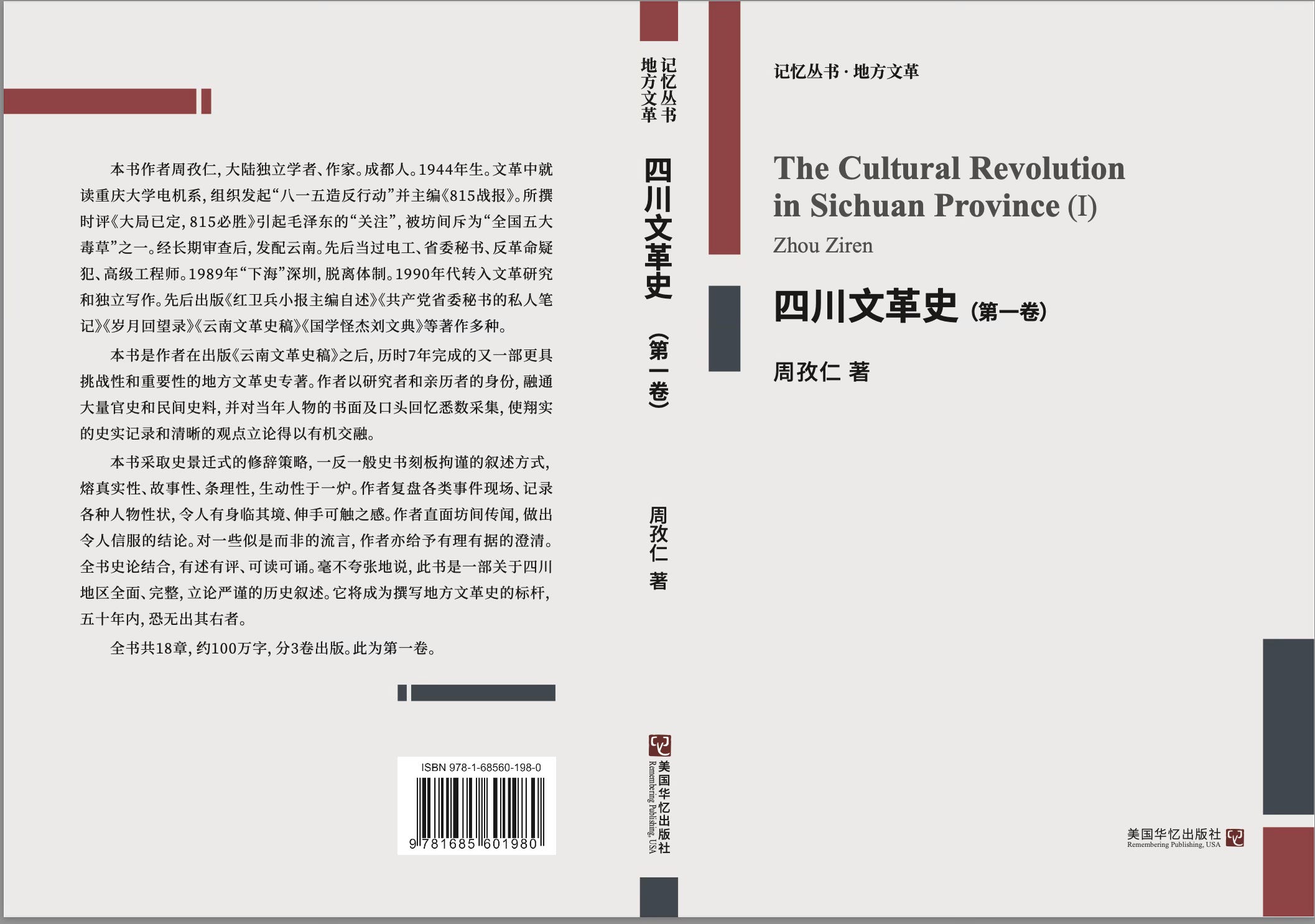 周孜仁著《四川文革史稿》是一部论述全面、完整,立论公允的有关四川省文化大革命历程的力作,值得向广大读者和文化大革命研究者介绍和推荐。