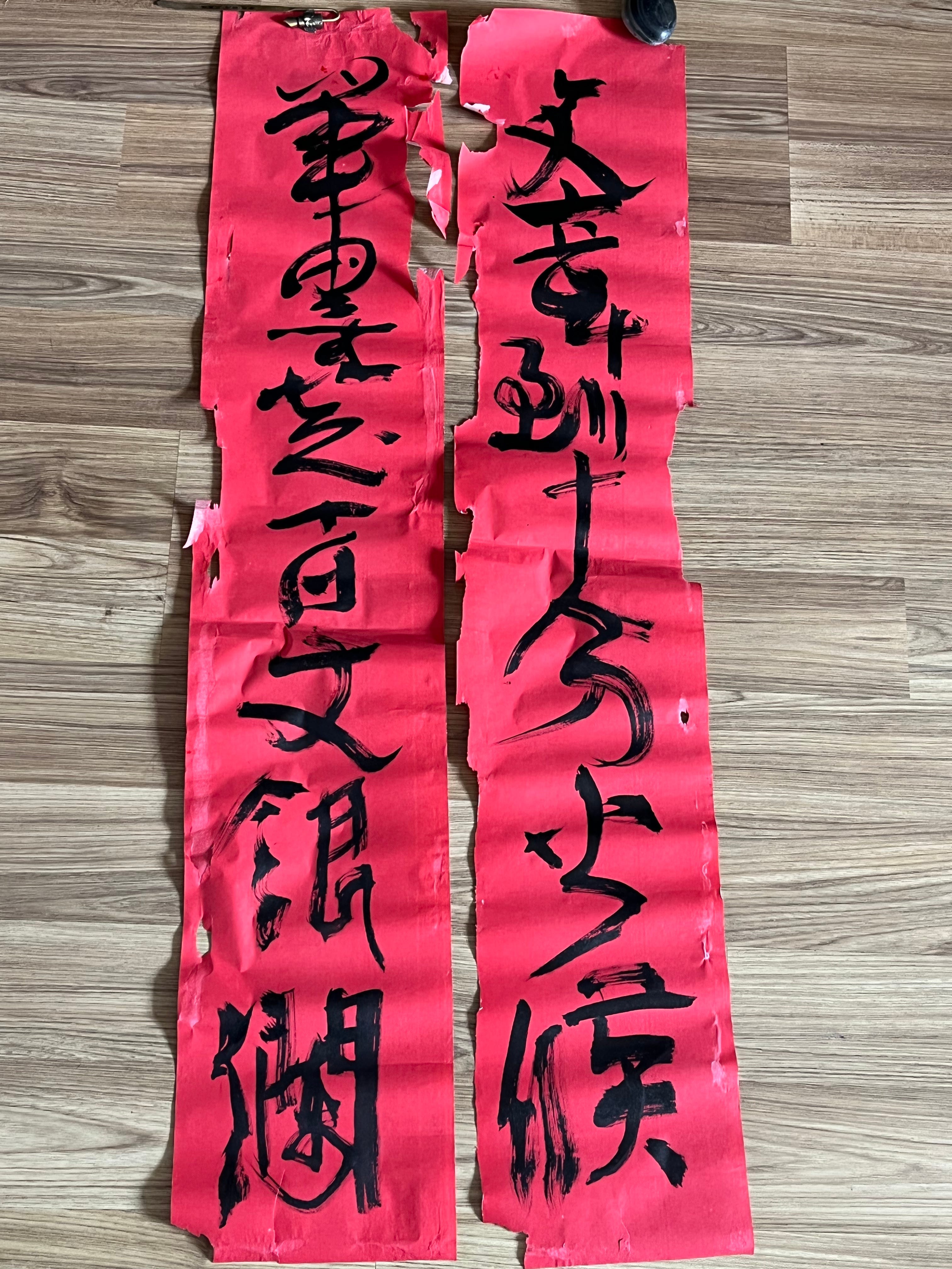 那个蒲扇写着“长精神”,破处用美纹纸补了三块补丁,也补写“物随人长久,人随物安定”,思考着中国文明对未来世界的贡献。