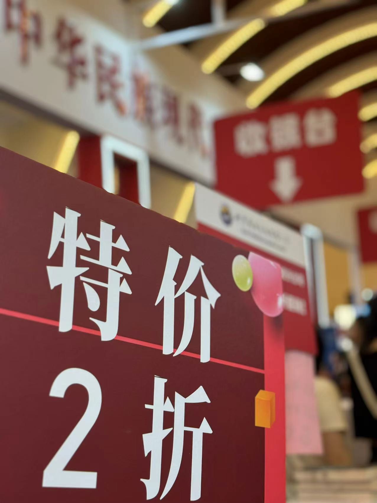 书展上的书真便宜,每家都在打折。有人举着喇叭喊:“全场三折,走过路过不要错过哦!”这很像我们河北老家的农贸市场;有些出版社则反复播放录制好的吆喝,更省事的就用鲜艳醒目的大字招牌做宣传。越是名著往往折扣越多。人民文学出版社的经典英文小说,装帧精美,本来原价也只有20几元钱,再打两折,就只相当一罐可乐的价钱。