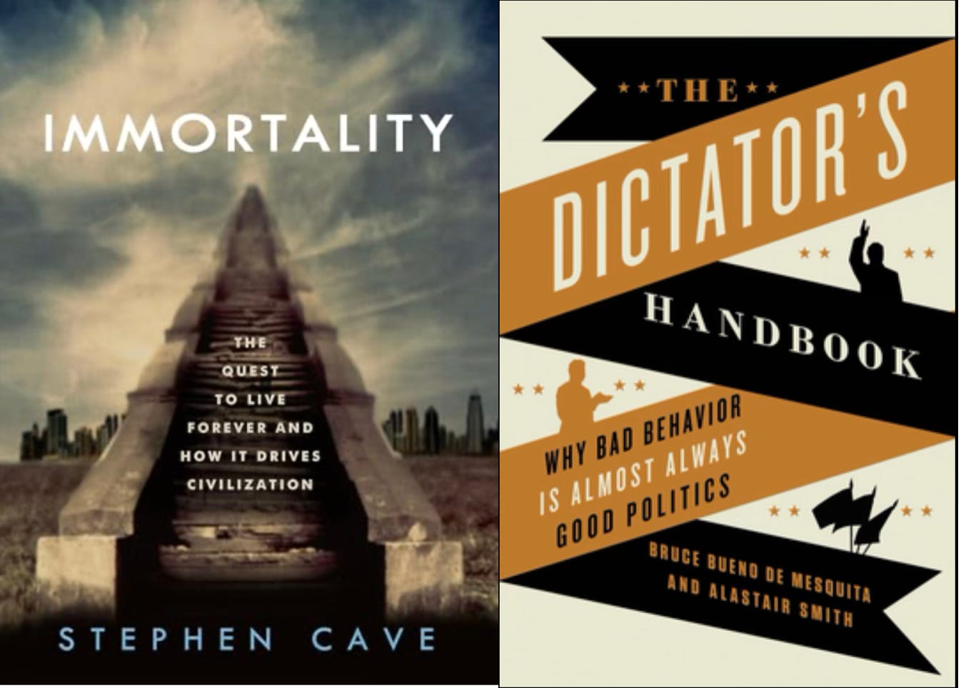 在《不朽的追求》前一年,还出版了另一部重要著作:布鲁斯·布埃诺·德·梅斯基塔(Bruce Bueno de Mesquita)和阿拉斯泰尔·史密斯(Alastair Smith)的《独裁者手册:为何坏行为几乎总是好政治》(The Dictator's Handbook: Why Bad Behavior is Almost Always Good Politics, 2011),同样涉及了肉体生存与政治生存的关系。